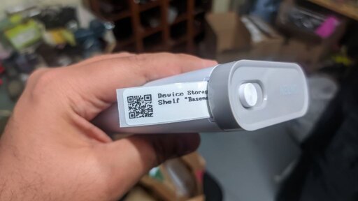 This little printer is pretty handy for labeling tasks, with one noticeable problem: the resolution is quite low, so I cannot afford printing full length domain name on such a tiny label. What I ended up with is writing my own microservice that puts fake http://i.nv/ domain in front of inventory ID. That domain is provided by DNSMASQ that I run on my server, and there’s also NGINX listening for that domain and doing 302 onto an actual Homebox page.