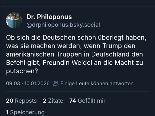 Und du meinst Deutschland schaut dabei zu wie die USA massenhaft Soldaten einfliegt? Und dann? Marschieren die aus Baden-Württemberg nach Berlin und belagern die Stadt? Eine Stadt mit 4 Millionen Einwohnern? Einfach so?