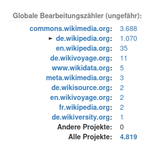 Ihr könnt euren Account hier abfragen: https://xtools.wmcloud.org/ec/de.wikipedia