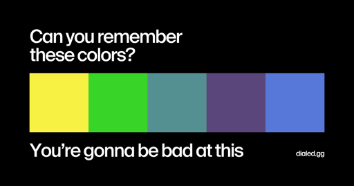 Mein Problem ist, dass ich erst eine Farbe sehe (ohne irgendeinen Kontext) und dann Farbregler bedienen muss, die mir beim Bedienen ständig neue Farben in ähnlicher Größe zeigen. Dadurch wird meine Erinnerung überschrieben. D.h. es ist spielt mindestens noch ein zweiter Skill rein: wie schnell komme ich auf die gewünschte Farbe.