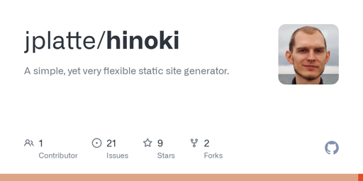 I just released v0.1.0 of hinoki, my static site generator :)