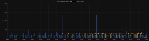 Background: In addition to some other things, I bought two “Eightree” brand Zigbee-compatible plugs to see how they fare. One is monitoring the power usage of both freezers on a power strip (don’t worry, it’s a heavy duty strip meant for this), and the other is measuring the usage of my entire desktop setup (including monitors and the HA server itself, a Lenovo M710q).